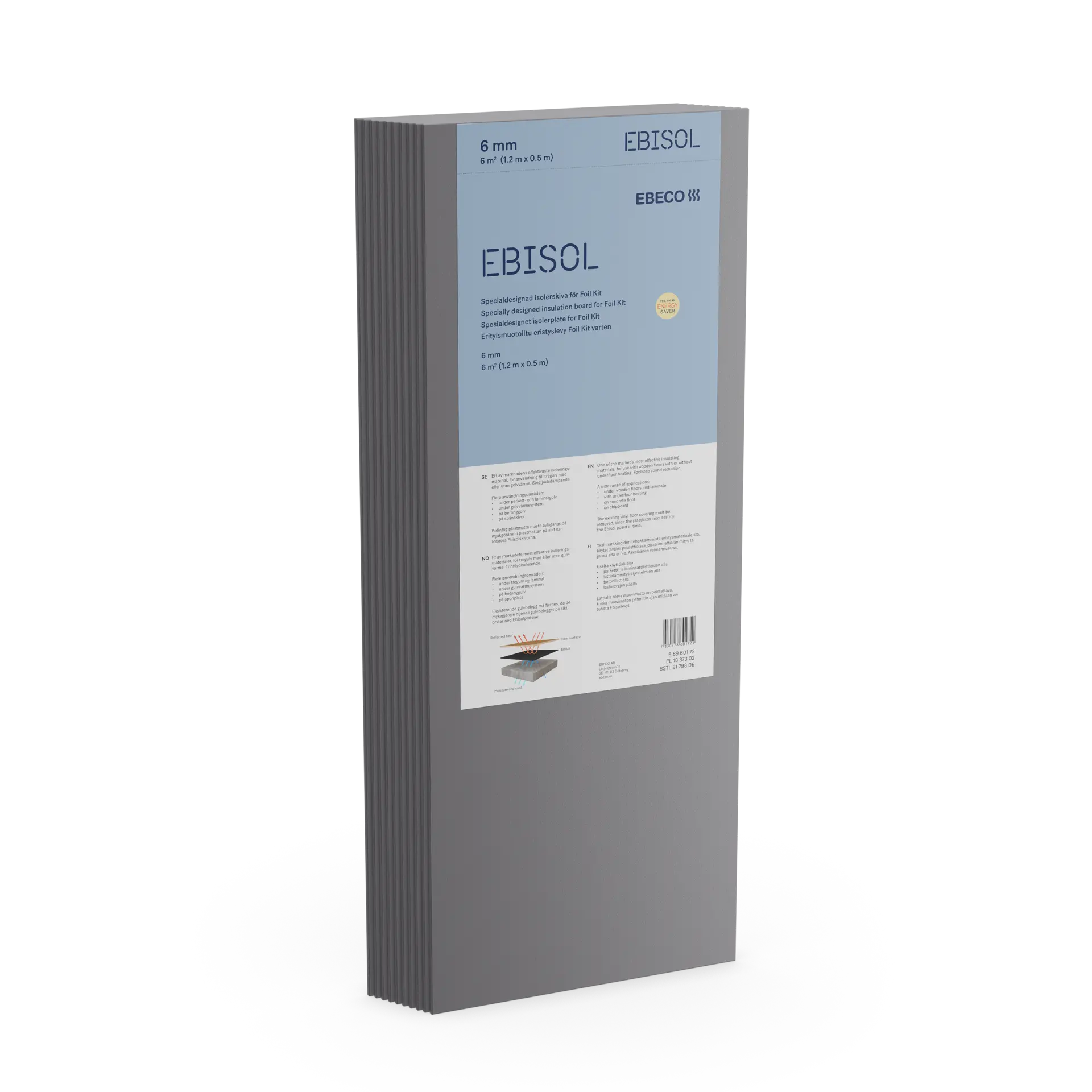 Ebisol er en energieffektiv underlagsplade beregnet til brug under træ- og laminatgulve. Pladen har gode trinlydsdæmpende egenskaber samt høj isoleringsevne. Ebisol er fleksibel og kan lægges på de fleste underlag, er let at skære til og tilpasse til overfladen.