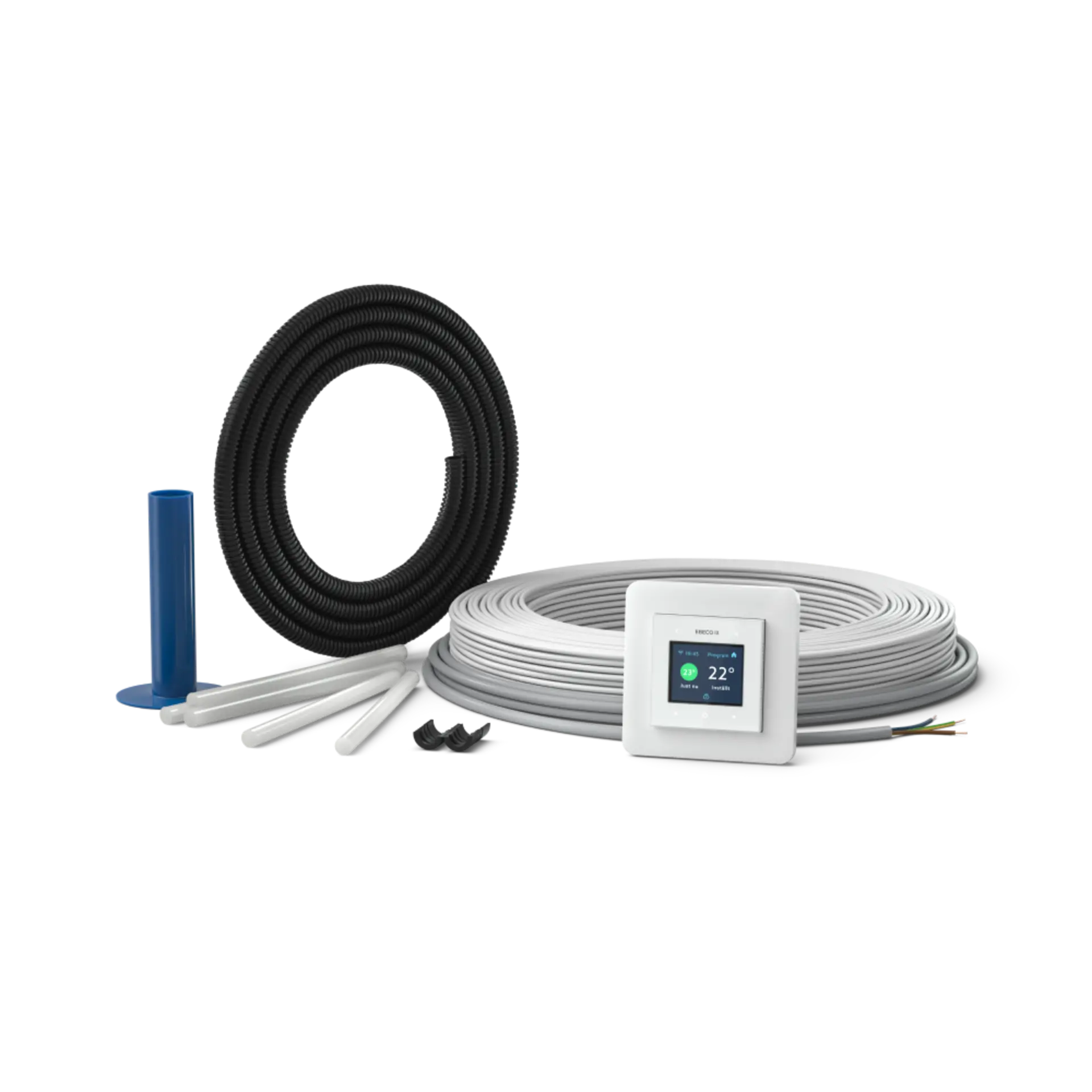 Cable Kit -tuotteessa käytetään Cableflex 11 -lämpökaapelia, joka yleensä tasoitetaan sisään. Yhdessä raudoitukselle tarkoitetun Cable Clip 4 -kaapelikiinnikkeen kanssa säästät sekä aikaa että rahaa ja varsinkin polviasi.