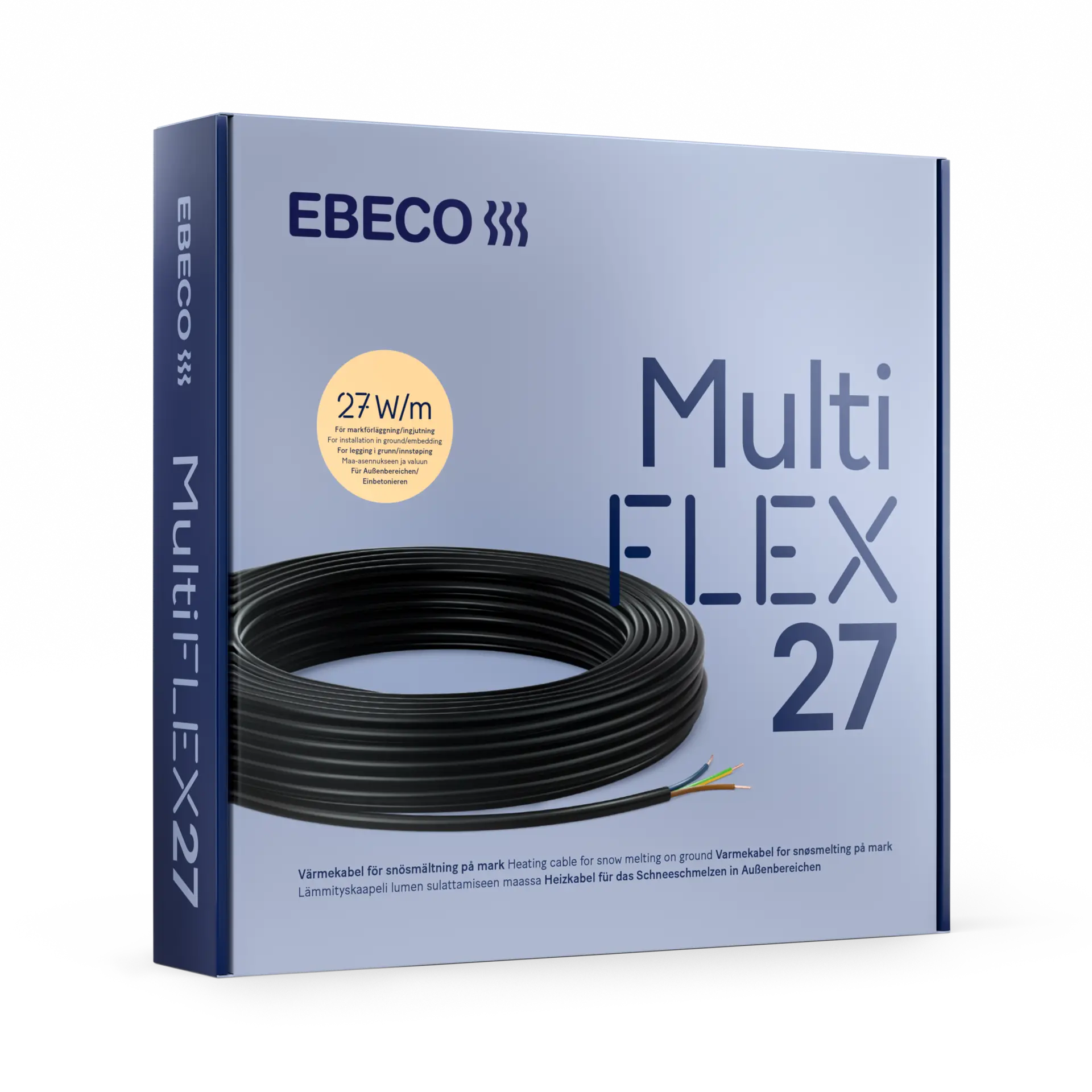 Lämpökaapeli Multiflex 27 pitää autotallien ajotiet, sisäänkäynnit jne. helposti puhtaana lumesta ja jäästä. Asennus vähentää liukastumisvaaraa eikä lumen luonnille, hiekoitukselle tai suolaukselle ole enää tarvetta. Liikkuminen alueilla helpottuu ja turvallisuus alueilla paranee. Lämpökaapeli on tarkoitettu asennettavaksi hiekkapetiin asfaltin tai kiveyksen alle. Sen voi asentaa myös hienoon kerrokseen betonilevyn päällä tai kiinnittää vahvikkeeseen suoraa valua varten. Normaalisti asennus tehdään noin 30–70 mm valmiin pinnan alle.