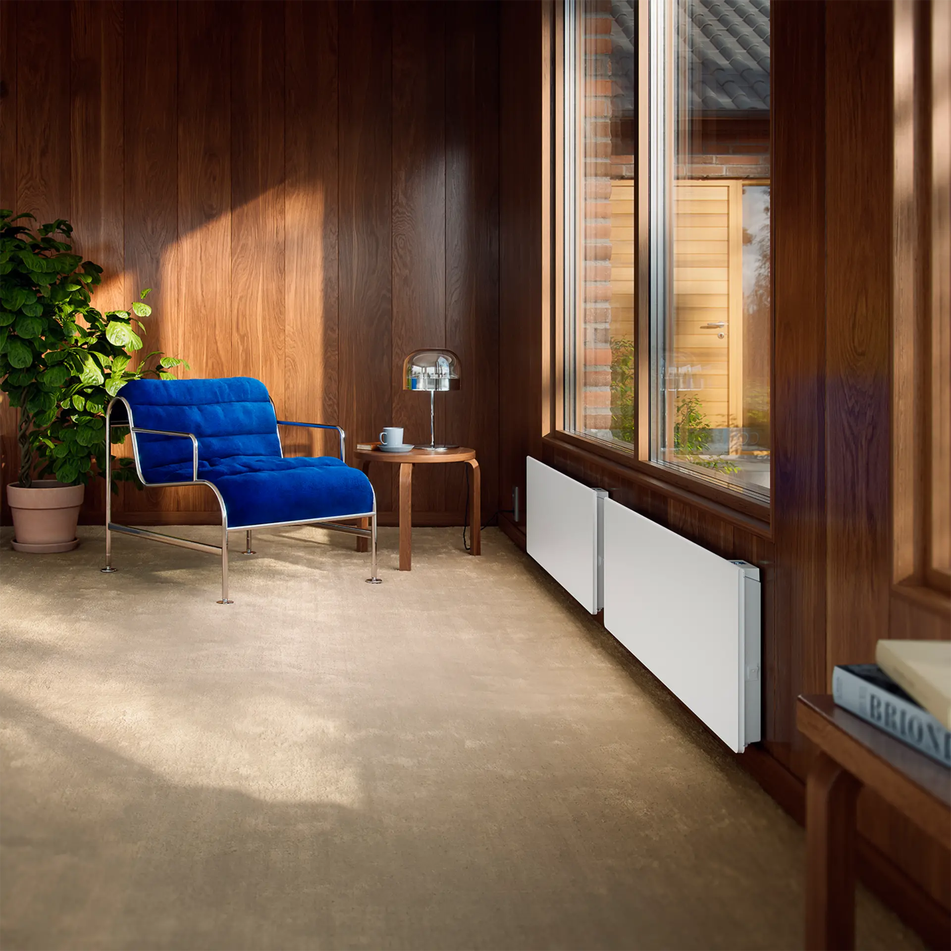 Elradiator med integrerat wifi och färgdisplay. Den integrerade termostaten möjliggör flertalet individuellt justerbara energisparprogram, har en enkel och tydlig navigering samt visar energiförbrukning och historik. Med möjlighet till knapplås och barnsäker temperaturbegränsning (max 60°). Kan styras på distans med Ebeco Connect-appen och genom integrationer som Google Home, Tibber samt vårt öppna API.