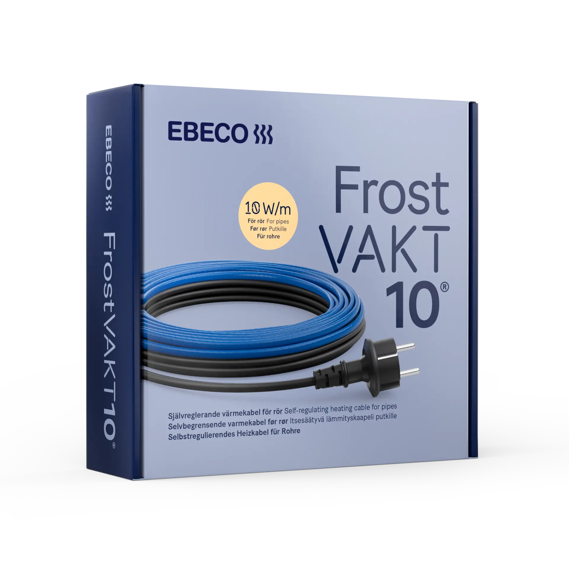 Frostvakt 10 förebygger skador och läckage orsakade av frostsprängda rör och vattenledningar. Värmekabeln har en förmonterad stickpropp som ansluts enkelt till ett jordat vägguttag via jordfelsbrytare. Vanliga användningsområden är avloppsrör, vattenrör och vattenmätare i t.ex. sommarstugor, garage, växthus, husvagnar eller båtar. Styrs effektivt med Frostvakt Control. Kabeln är PVC-fri och lämpar sig väl för dricksvattenledningar. Typgodkänd för dricksvatten enligt KIWA (godkännande 1289).