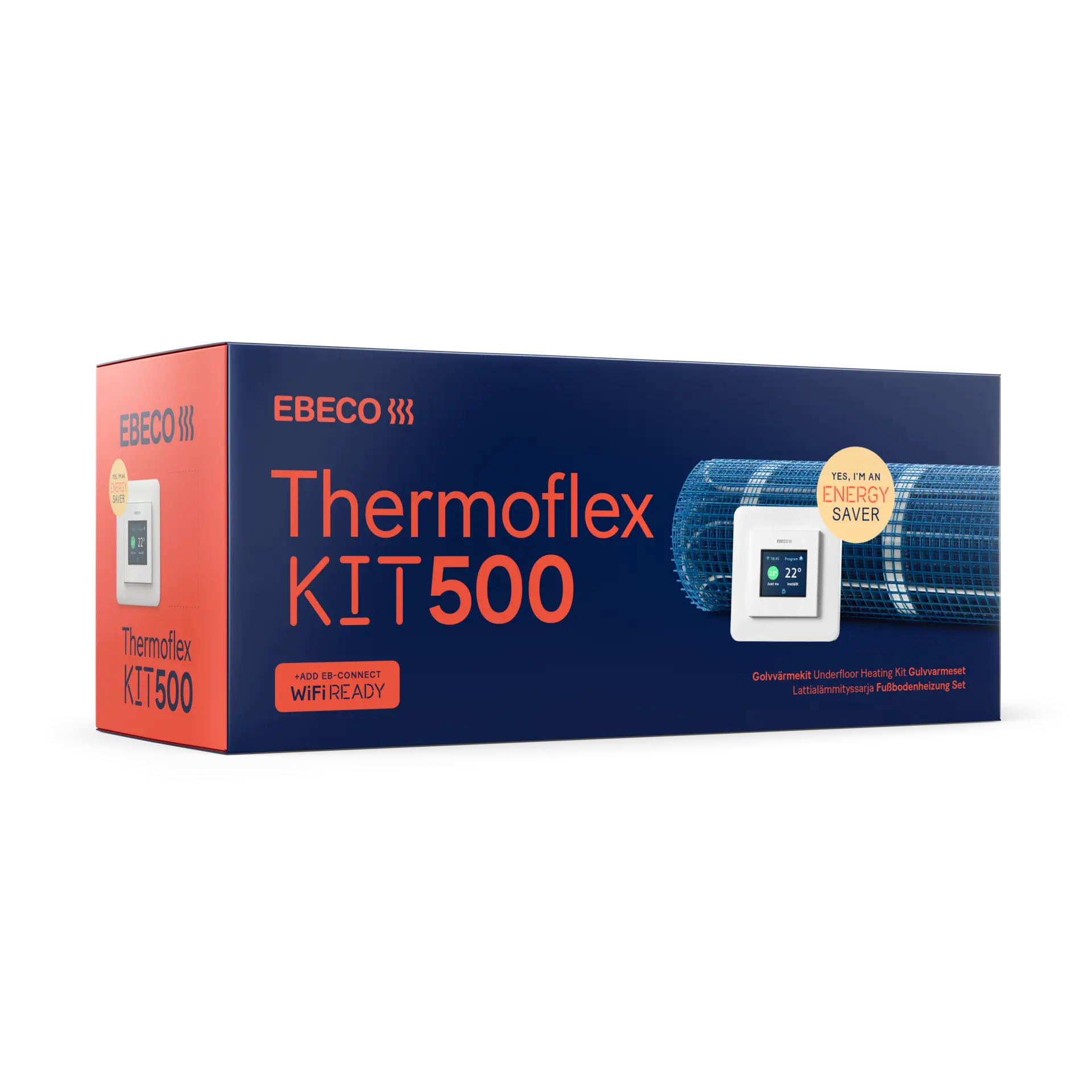 Golvvärmekit med självhäftande värmekabelmatta och termostat