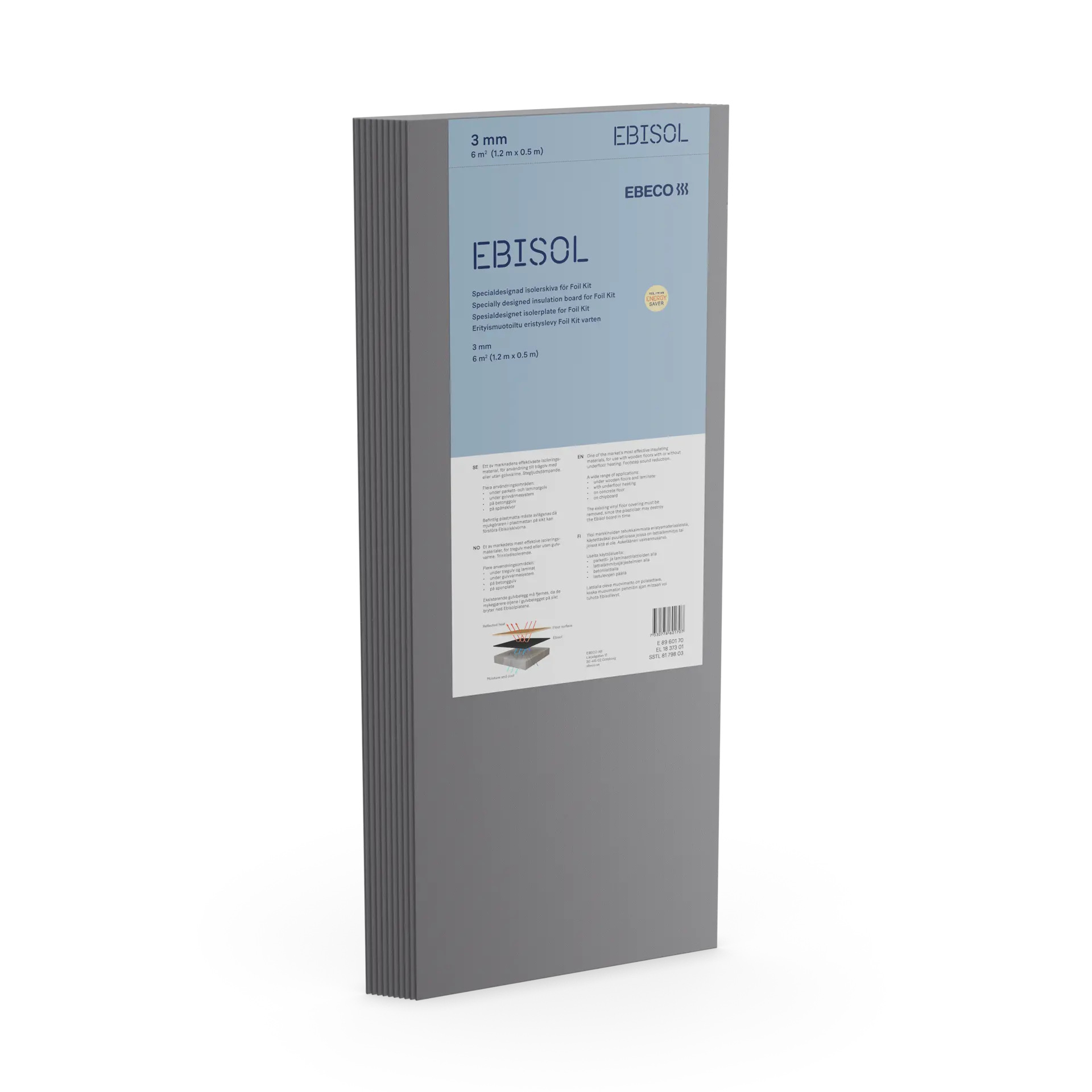Ebisol är en energieffektiv underlagsskiva avsedd för användning under trä- och laminatgolv. Skivan har mycket goda stegljudsdämpande egenskaper samt hög isoleringsförmåga. Ebisol är flexibel och kan läggas på de flesta underlag, är lätt att skära och anpassa till ytan.